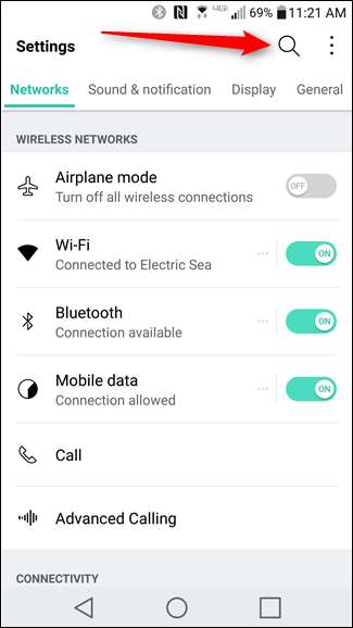 Po wejściu do menu Ustawienia sytuacja może być jeszcze trudniejsza - każdy producent robi w tym menu swoje własne, więc nie ma jasnego sposobu, aby powiedzieć „dotknij tego, potem tego, a potem tego”. Najłatwiej więc będzie skorzystać z narzędzia wyszukiwania, które zwykle znajduje się w prawym górnym rogu. Stuknij w to, a następnie wpisz „Blokada SIM”.