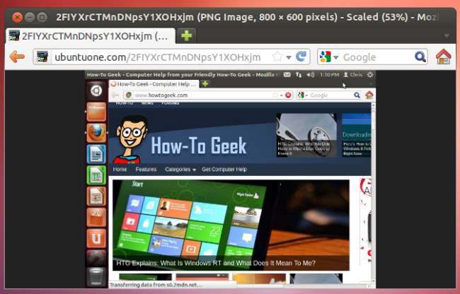 Ubuntu skopiuje adres internetowy pliku do schowka. Możesz wkleić go do paska adresu przeglądarki, aby wyświetlić go online lub wysłać link do kogokolwiek innego.