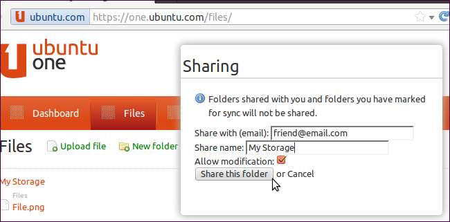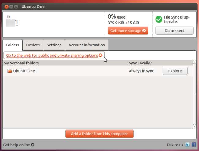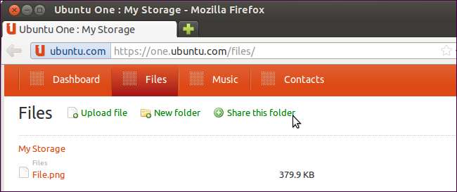 Możesz także kliknąć Udostępnij ten folder łącze w witrynie Ubuntu One, aby udostępnić folder.