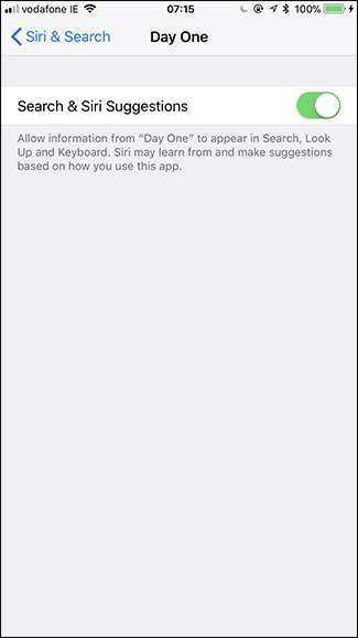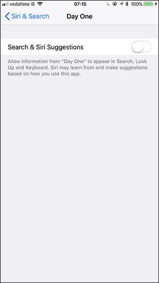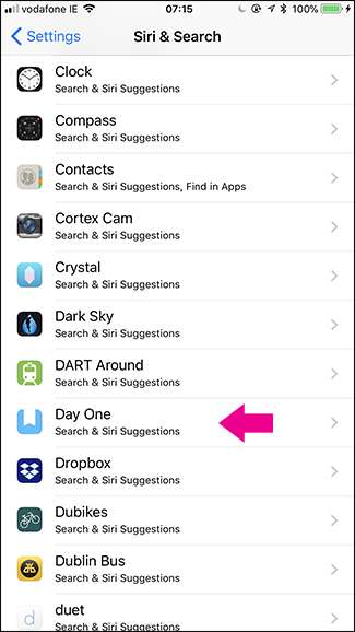 Przewiń w dół, aż znajdziesz aplikację, której chcesz przestać pojawiać się w wyszukiwaniu Spotlight. Szukam pierwszego dnia.
