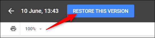 Po wybraniu wersji, na którą chcesz wrócić, kliknij przycisk „Przywróć tę wersję” w górnej części okna.