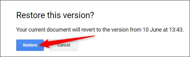 Wyskakujące okienko ostrzeże Cię, że dokument ma zostać przywrócony do innej wersji. Kliknij „Przywróć”.