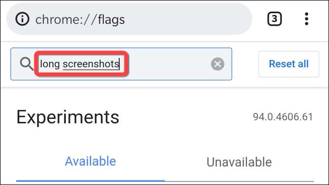 Na stronie "Eksperymenty" wpisz "Długie zrzuty ekranu" w pasku wyszukiwania.
