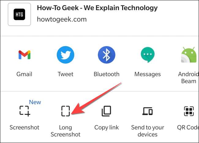 Menu udziału Chrome zostanie otwarte na dole. Wybierz "Long Screenshot".