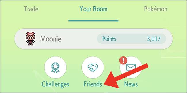 Aby rozpocząć, dotknij „przyjaciół” w menu głównym Pokémon głównym.