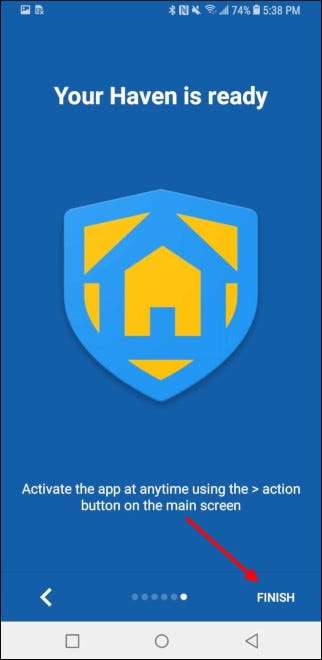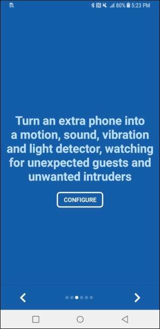 Przed skonfigurowaniem aplikacji Haven upewnij się, że w idealnym miejscu jest wystarczająco dużo miejsca na zamontowanie telefonu, podłączenie zasilania i gdzie możesz uruchomić kabel Ethernet lub Wi-Fi. Gdy to zrobisz, otwórz aplikację Haven. Przewiń kilka pierwszych ekranów, a następnie wybierz „Konfiguruj”.