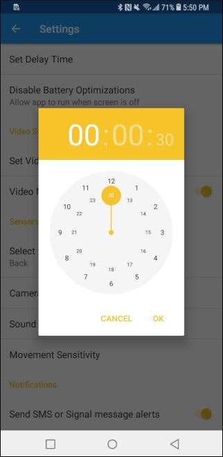 Wykrywanie ruchu i dźwięku jest świetne, ale Haven umożliwia także nagrywanie wideo przez określony czas. Stuknij ikonę ustawień w prawym dolnym rogu głównego ekranu, a następnie włącz przełącznik „Monitorowanie wideo”.