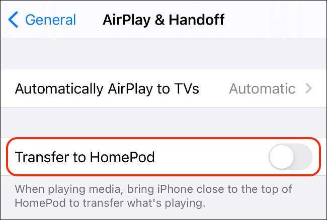 Wreszcie, należy wyłączyć „Transfer do HomePod” opcję wyłączyć tę funkcję całkowicie.
