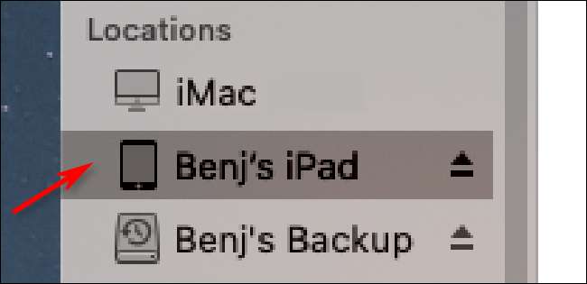 Zlokalizować iPada na komputerze i kliknij go. Na MacOS 10.15 lub później, zobaczysz go po lewej stronie okna programu Finder w sekcji „Lokalizacje”.