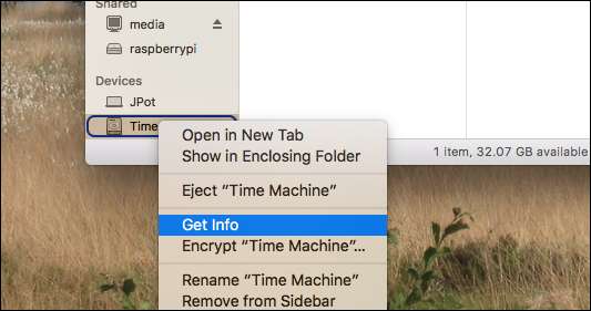 Następnie będziemy chcieli upewnić się, że Twoje Raspberry Pi i każde urządzenie będzie miało uprawnienia do sterowania napędem. Przejdź do Findera, a następnie kliknij prawym przyciskiem myszy dysk na pasku bocznym. Kliknij „Uzyskaj informacje”.