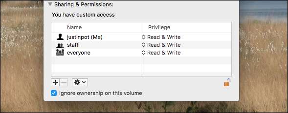 Kliknij kłódkę w prawym dolnym rogu, a następnie wprowadź hasło. Następnie zaznacz „Ignoruj własność tego woluminu”. Dzięki temu możesz podłączyć dysk zewnętrzny do Pi.