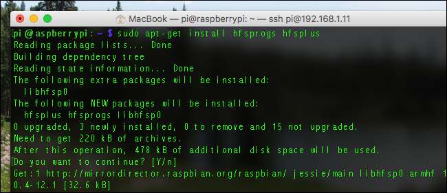 Następnie zainstaluj dwa pakiety: hfsprogs i hfsplus. Pozwoli to Twojemu Raspberry Pi odczytać dysk sformatowany w systemie Mac.
