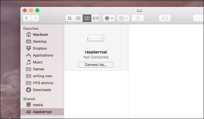 Udaj się do Findera na komputerze Mac i powinieneś zobaczyć tutaj swoje Raspberry Pi.