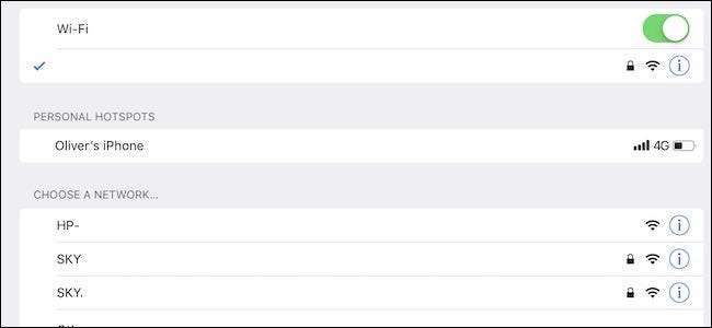 Gdy to zrobisz, otwórz aplikację Ustawienia i kliknij opcję „W-Fi”. Następnie stuknij nazwę urządzenia, z którym chcesz się połączyć. W przypadku naszego zrzutu ekranu łączymy się z „iPhonem Olivera”.