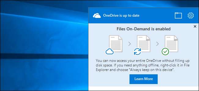 Wydaje się, że OneDrive automatycznie włącza tę funkcję. Wystarczy zalogować się do OneDrive za pomocą swojego konta Microsoft. Jeśli zalogujesz się do swojego komputera za pomocą konta Microsoft, nastąpi automatyczne zalogowanie. Jeśli tego nie zrobisz, musisz uruchomić aplikację OneDrive z obszaru powiadomień - wygląda jak ikona chmury - i zalogować się.