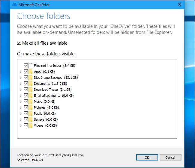 Jeśli nie chcesz korzystać z tej funkcji i chcesz, aby wszystkie pliki OneDrive zostały pobrane na komputer - na przykład aby łatwiej było tworzyć ich kopie zapasowe lub mieć pewność, że wszystkie są dostępne w trybie offline - możesz wyłączyć tę funkcję, a usługa OneDrive zachowywać się jak dawniej. Nadal masz możliwość selektywnie synchronizować foldery , Jeśli lubisz.