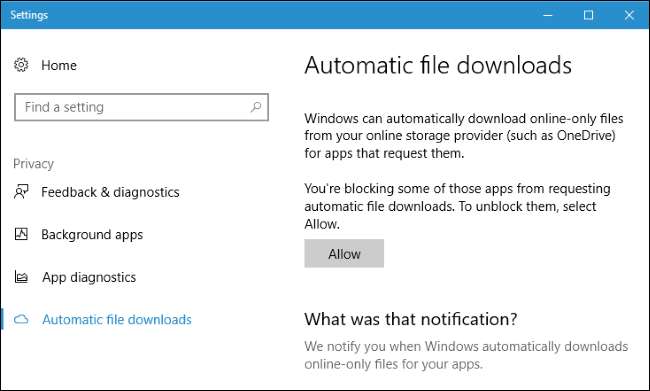 Możesz zarządzać aplikacją, której zablokowano automatyczne pobieranie plików, na ekranie Ustawienia> Prywatność> Automatyczne pobieranie plików. Jeśli zablokowałeś aplikacje, możesz kliknąć przycisk „Zezwól”, aby odblokować wszystkie aplikacje. Jeśli nie masz zablokowanych aplikacji, przycisk „Zezwól” będzie wyszarzony.