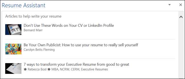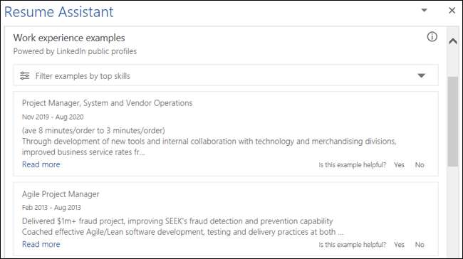 Wraz z jego przykładami, listami i zasobami, Asystent LinkedIn Resume w Word jest zdecydowanie warto spędzać komponowanie lub edycję CV. Najbardziej przydatne są pierwsze dwie sekcje (z przykładami i najważniejszych umiejętnościami). Ale także spójrz na inne pomocne funkcje. Mogą po prostu dać ci przewagę, której potrzebujesz jako poszukiwacz pracy.