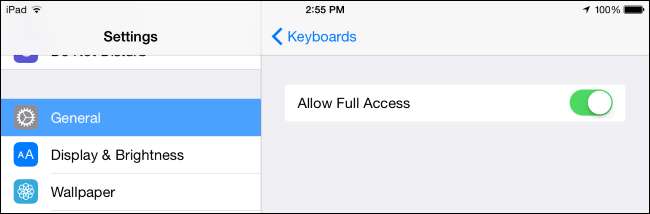 Apple zauważa, że może to być problem z bezpieczeństwem, ponieważ klawiatura może potencjalnie przesyłać prywatne dane, które wpisujesz - takie jak hasło lub informacje o karcie kredytowej. Z tego powodu klawiatury domyślnie nie mają dostępu do Internetu i nie musisz włączać dostępu do Internetu, aby używać dowolnej klawiatury. Niektóre funkcje klawiatury - takie jak synchronizacja SwiftKey - mogą być dostępne tylko po połączeniu z Internetem.