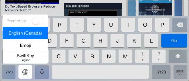 Możesz także długo nacisnąć ikonę kuli ziemskiej, aby wyświetlić listę dostępnych klawiatur - tę samą listę, którą skonfigurowałeś na ekranie Ustawienia klawiatury. Stuknij nazwę klawiatury, aby się na nią przełączyć.