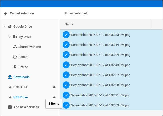 Google zapewnia obsługę różnych systemów plików, a wszystko, co łączysz, powinno po prostu działać - głównie. Możesz nawet podłączyć zewnętrzny dysk przez USB, aby uzyskać dostęp do plików zapisanych na płytach DVD i CD. Sprawdź swojego Chromebooka, aby zobaczyć, jakie zewnętrzne porty pamięci oferuje.