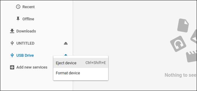 Kiedy skończysz z dyskiem, pamiętaj, aby go wysunąć, zanim wyjmiesz go z Chromebooka. To chroni przed utratą danych upewniając się, że Chromebook zakończył zapisywanie na dysku, zanim go usuniesz. Z tego samego powodu należy „bezpiecznie usuwać” dyski w systemie Windows