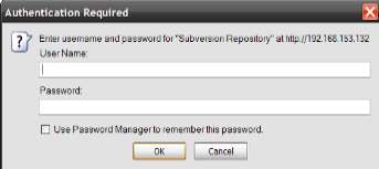 Teraz, jeśli przejdziesz w przeglądarce do http://www.server.com/svn, powinieneś zobaczyć, że repozytorium jest włączone dla anonimowego dostępu do odczytu, ale dostęp zatwierdzający będzie wymagał nazwy użytkownika.