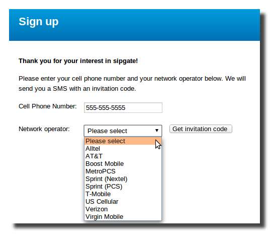 Uwaga: to jedyny krok, który wymaga telefonu, który może odbierać wiadomości tekstowe, aby zweryfikować Twój numer. Wysłanie tego zaproszenia na mój numer Google Voice nie pomogło, ale wysłanie SMS-a na telefon znajomego, a następnie wprowadzenie kodu na stronie sipgate działało.
