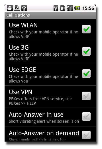 Stuknij przycisk Wstecz na telefonie, a następnie przejdź do opcji połączeń, aby włączyć połączenia Wi-Fi (WLAN), 3G i EDGE, jeśli chcesz.
