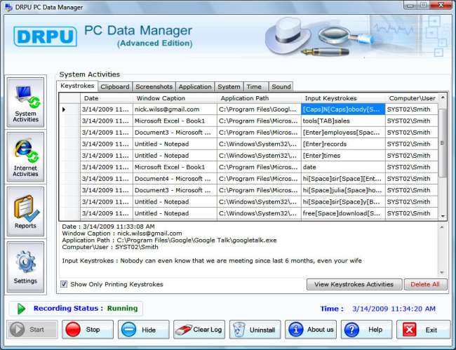 Inne typy złośliwego oprogramowania mogą działać jako keyloggery. Na przykład wirus, robak lub trojan może działać jako keylogger. Keyloggery mogą być również instalowane do celów monitorowania przez firmy, a nawet zazdrosnych małżonków.