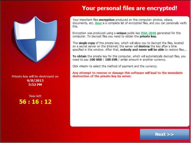 Bardziej szkodliwe złośliwe oprogramowanie, takie jak CryptoLocker, dosłownie szyfruje pliki i żąda zapłaty, zanim będzie można uzyskać do nich dostęp. Tego typu złośliwe oprogramowanie jest niebezpieczne, zwłaszcza jeśli nie masz kopii zapasowych.