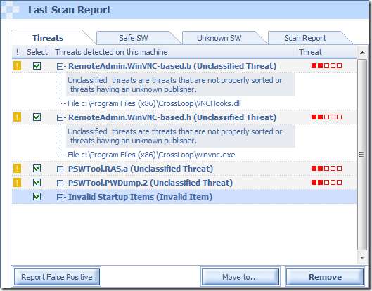 Po zakończeniu skanowania otrzymasz raport w interfejsie użytkownika. Jest to przydatne, ponieważ znalazłem kilka fałszywych alarmów. Istnieją miliony aplikacji i żaden program nie zgłosi ich wszystkich poprawnie. Koniecznie sprawdź to i zgłoś fałszywe alarmy, aby zapewnić lepszą bazę danych.