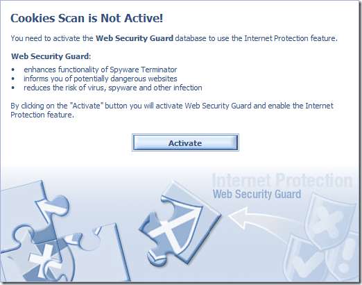 Jeśli spojrzysz na sesję Ochrony Internetu, możesz zobaczyć ten ekran powiadomienia. Pamiętaj, że zdecydowaliśmy się nie instalować paska narzędzi WWW, a pliki cookie nie będą skanowane.