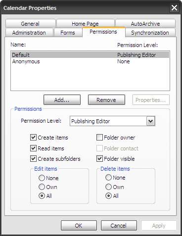 W tym oknie kliknij zakładkę Uprawnienia. To tutaj decydujesz, kto w Twojej sieci będzie miał dostęp i jakie będą mieć prawa. Jeśli chcesz udostępnić komuś coś, po prostu kliknij Domyślna i wybierz poziom uprawnień. Każdy poziom zezwala lub odmawia różnych praw do edycji. Więcej informacji na temat poziomów uprawnień można znaleźć na stronie Witryna Microsoft Office