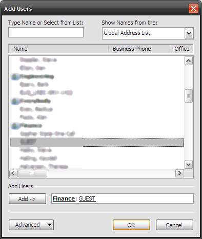 Jeśli wolisz wybrać osoby w swojej sieci, którym chcesz udostępnić swój kalendarz, po prostu kliknij Dodaj.. i wybierz osoby lub działy, którym chcesz udzielić udostępniania. Kliknij OK i udostępniasz teraz swój kalendarz programu Outlook.