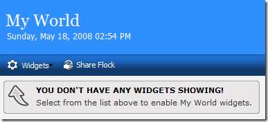 Możesz skonfigurować swoją stronę główną, jak chcesz, ale unikalną funkcją Flocka jest Mój świat, w którym w zasadzie dodajesz widżety tak, jak chcesz iGoogle lub Netvibes .