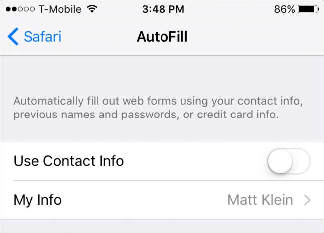 W ustawieniach autouzupełniania Safari może automatycznie wypełniać formularze Twoimi danymi osobowymi, które możesz edytować, stukając w „Moje informacje”.