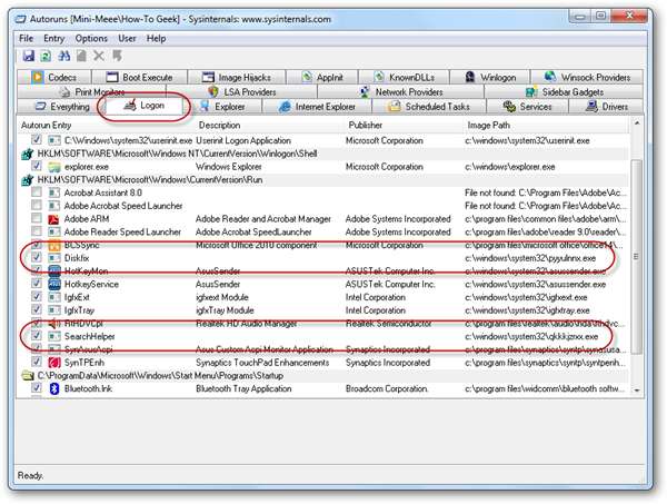 - Wpisy złośliwego oprogramowania zwykle pojawiają się w Zalogować się zakładka Autoruns (ale nie zawsze!)
