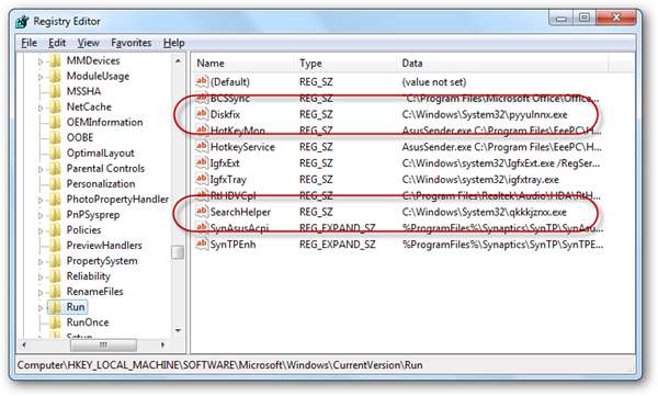 Te wpisy, wyróżnione powyżej, są dość typowe dla infekcji złośliwym oprogramowaniem: