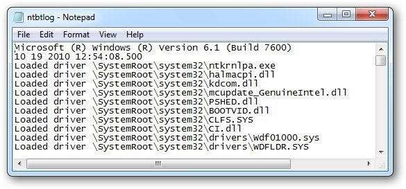 Notatnik% SystemRoot% \ ntbtlog.txt