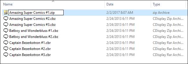 Ponieważ mówimy o typach plików, a nie o artykułach w nich zawartych, oto ostrzeżenie spoilera: pliki .CBZ i .CBR to tylko pliki .ZIP i .RAR ze zmodyfikowanymi rozszerzeniami. To wszystko, żadna sekretna podstępna rzecz nie dzieje się pod maską: po prostu archiwizuj pliki z obrazami w środku.