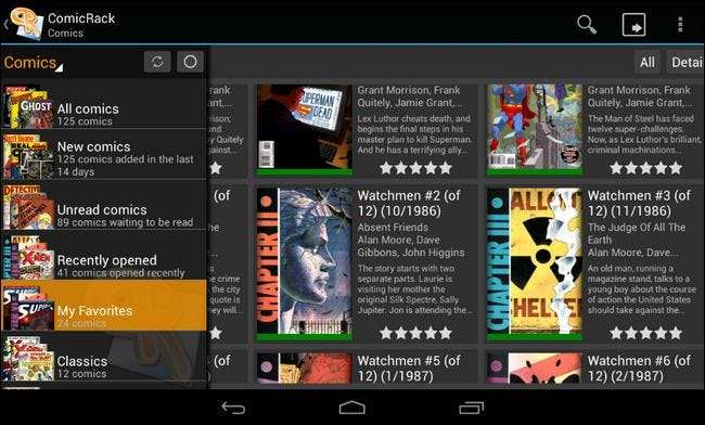 Tablety i komiksy wydają się naturalnymi towarzyszami, jest też mnóstwo świetnych mobilnych czytników komiksów. Użytkownicy Androida mogą pobrać bezpłatną kopię Zadziwiający czytnik komiksów lub bardzo popularne Aplikacja towarzysząca ComicRack na Androida - wersja bezpłatna to świetny samodzielny czytnik, podczas gdy wersja premium za 8 USD synchronizuje się z ComicRack w systemie Windows.