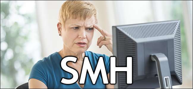 (Na marginesie, niektórzy myślą, że SMH oznacza „tyle nienawiści”. To jest podobne do znaczenia SMH w Bizzaro. Nie powiemy, że „tyle nienawiści” jest niepoprawne, ale nie jest to znaczenie, które większość osób kojarzy się z SMH, więc należy unikać używania go w tym celu).