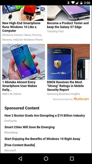 Weźmy na przykład następującą witrynę z wiadomościami. Jeśli ładuję zwykłą witrynę na telefon z Androidem, pojawia się wyskakująca nakładka reklamowa lub ogromna reklama, która wymaga ode mnie przewinięcia jej, zanim będę mógł przeczytać artykuł (oprócz zwykłych reklam w całym tekście).