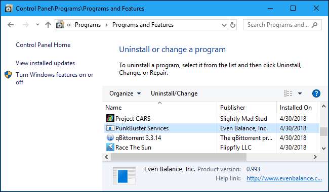 Aby to zrobić, przejdź do Panelu sterowania> Odinstaluj program. Wybierz „Usługi PunkBuster” na liście zainstalowanego oprogramowania, a następnie kliknij przycisk „Odinstaluj / Zmień”.
