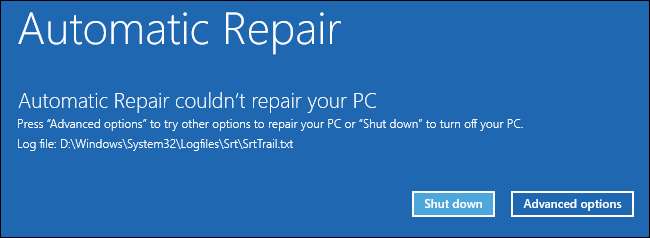 Na koniec kliknęliśmy „Opcje zaawansowane” i powiedzieliśmy systemowi Windows, aby mimo to się uruchomił. Nic się nie stało. Po prostu przez sekundę widzieliśmy czarny ekran, zanim komputer ponownie uruchomił się w trybie automatycznej naprawy. Najwyraźniej zniknęły ważne pliki wymagane do uruchomienia systemu Windows, a system operacyjny nie mógł się nawet rozpocząć.