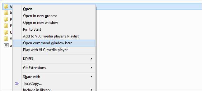 Outro truque interessante se você não é fã de abrir um prompt de comando a partir do menu de contexto é a capacidade de arrastar e soltar pastas no prompt e fazê-lo entrar automaticamente no caminho da pasta. Você precisará digitar o comando CD e arrastar a pasta para realmente alterar o caminho, mas você pode usar a mesma técnica para vários comandos diferentes.