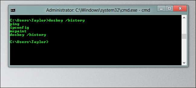 Provavelmente, você pressionou a tecla para cima para voltar aos comandos anteriores, mas isso pode ser uma dor ao tentar rastrear um comando específico. Uma outra maneira de visualizar seu comando anterior é usar o comando doskey.