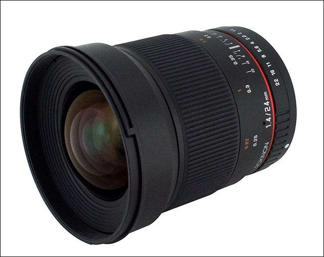 Por essas razões, Rokinon fabrica algumas das lentes de astrofotografia mais populares. Seus 24mm f / 1.4 custa apenas $ 549,00 . Não tem foco automático, então não é ótimo para nada além de astrofotografia ou fotografia de paisagem, mas é uma lente grande angular com uma abertura muito ampla. Lente equivalente da Canon, o EF 24mm f / 1.4L II , uma vez que tem autofoco, é muito mais versátil; mas por US $ 1.549 é quase três vezes o preço, sem melhora real na qualidade da imagem. Claro, você pode fazer alguns fotografia de rua , mas se você está apenas interessado em filmar a Via Láctea, isso não é um argumento de venda.