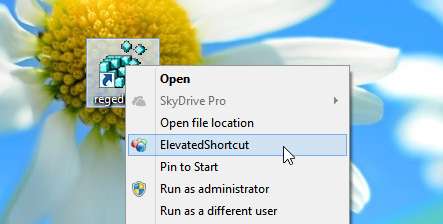 Com esta opção ativada, você pode clicar com o botão direito em um atalho existente (ou Shift e clicar com o botão direito) e quando a opção ElevatedShortcut for clicada, você será orientado na criação de um novo atalho.